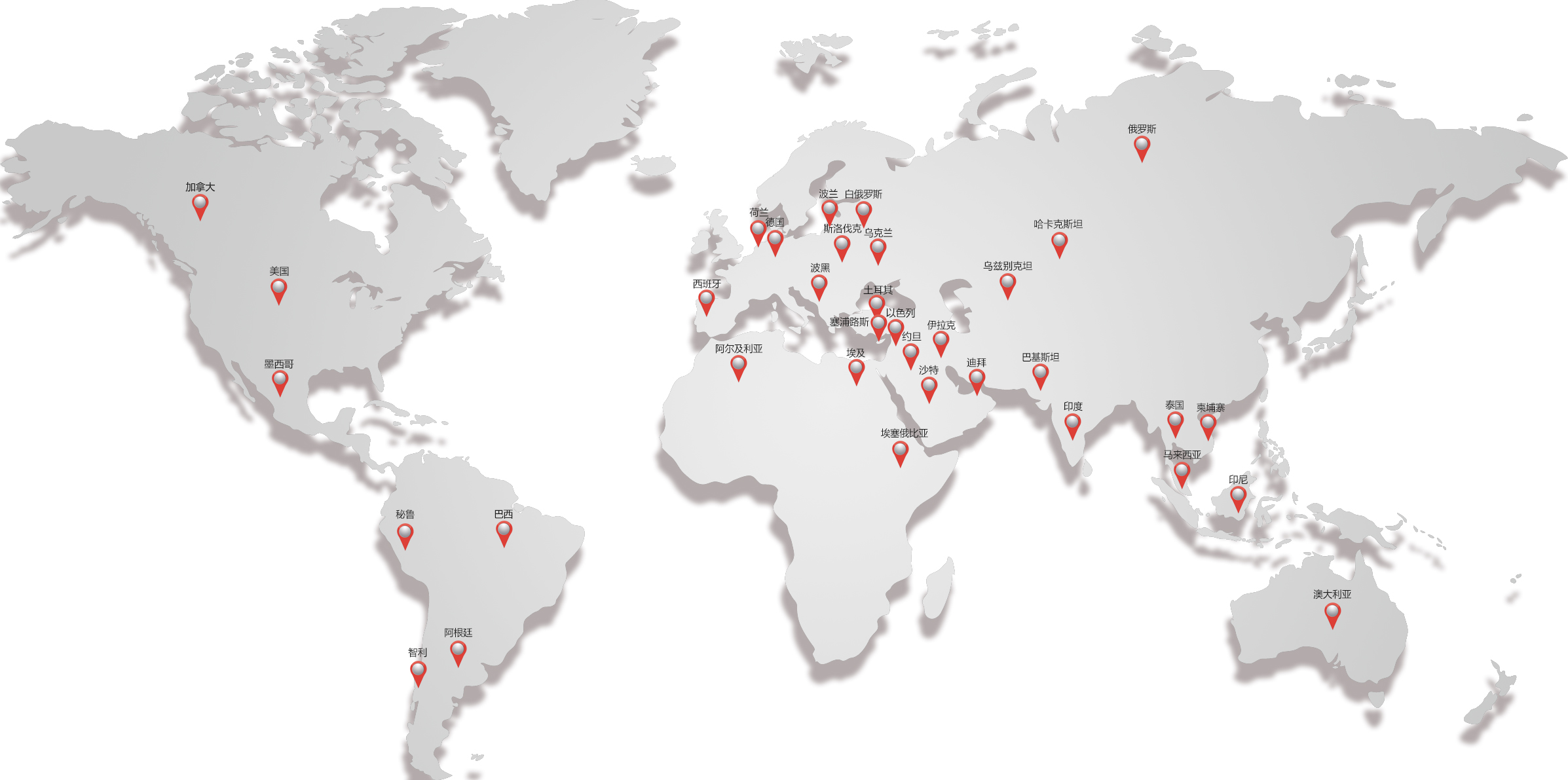 累計出口全球65個國家和地區(qū),包括美國,俄羅斯,波蘭,墨西哥,加拿大,澳大利亞,英國,東南亞以及印度等
